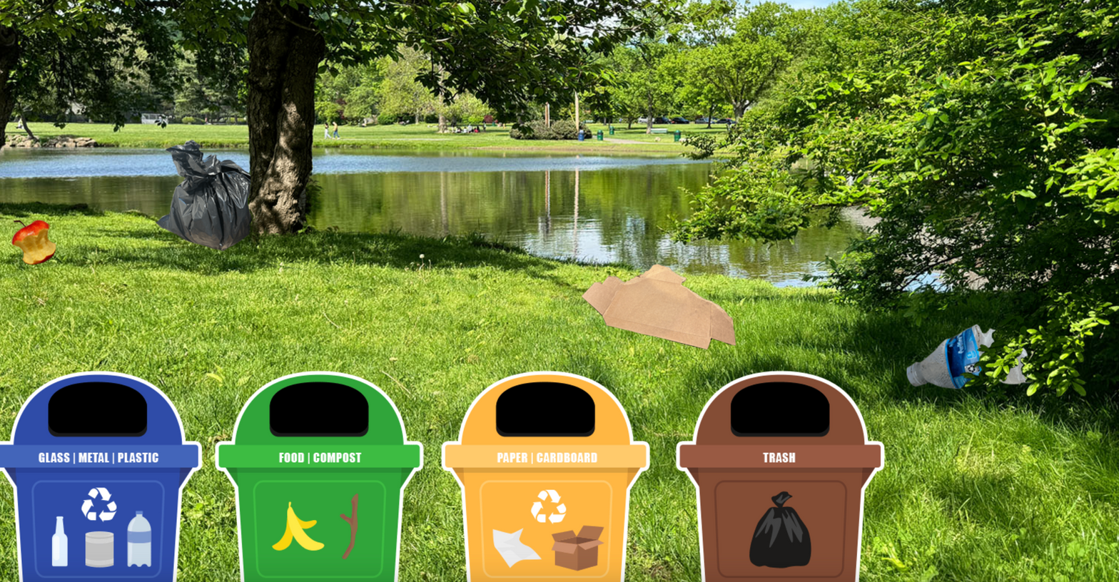 The bins would be clearly marked so that children would be able to sort the items found in the park. This action would then trigger a simple exercise with sight words that went along with the found item. Sight words would be in a similar sentence structure: This is a can. This is a bottle.